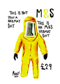 “This is not just a hazmat suit this is a succulent sensual hazardous material protection unit fashioned from the finest Egyptian non permeable cotton and a premium integrated breathing apparatus covered in steaming dollops of custard”